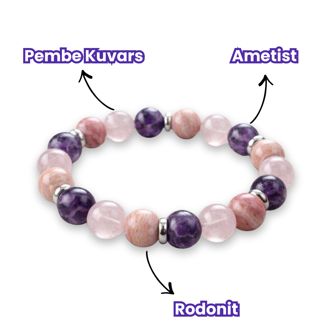 Aşk Bilekliği, ilişkilerde daha yumuşak, daha anlayışlı ve daha açık bir bağ kurmak isteyenler için tasarlandı. Taş kombinasyonu; romantik hissi büyütürken, iletişimde sakinlik ve denge hissini destekleyecek şekilde bir araya getirildi.