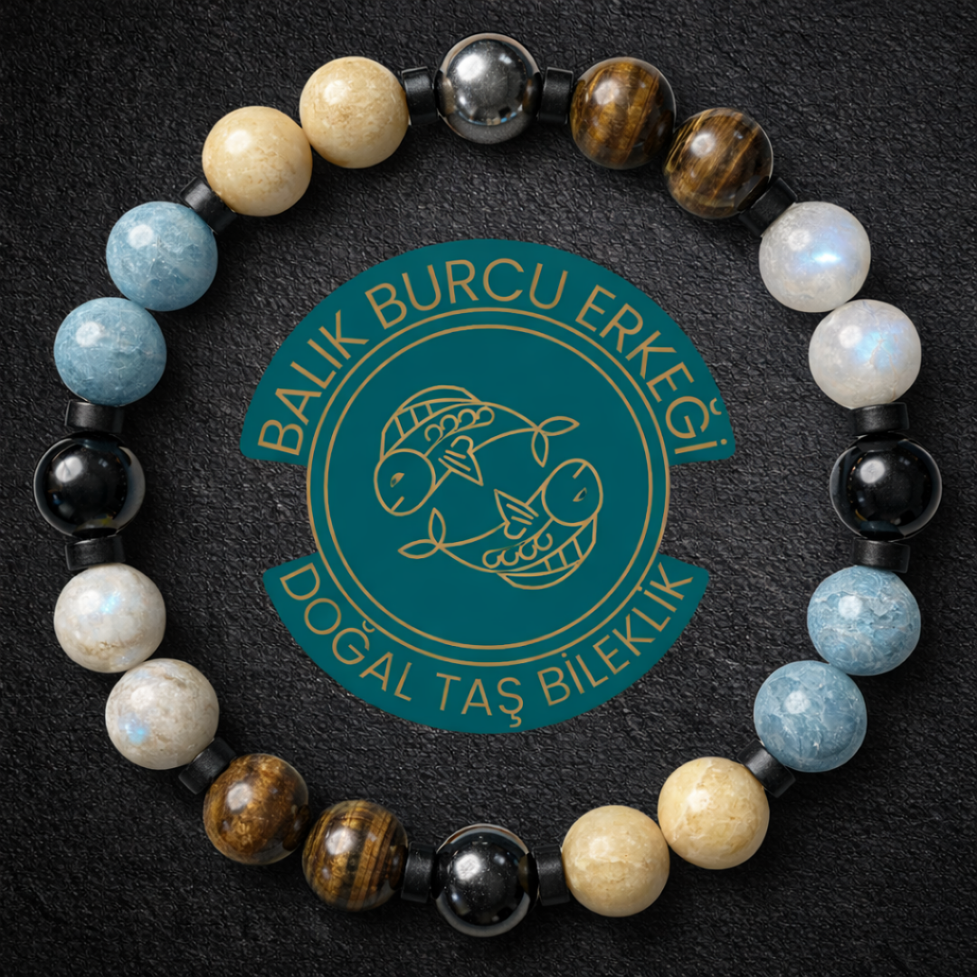 Bu bileklik; sezgilerini kaybetmeden güçlü kalmak, duygusal dengeyi korumak ve içsel huzurla ilerlemek isteyen Balık burcu erkekleri için tasarlandı. Taş kombinasyonu; hassas yapıyı desteklerken, sakin ama sağlam bir enerji alanı oluşturacak şekilde özenle bir araya getirildi.