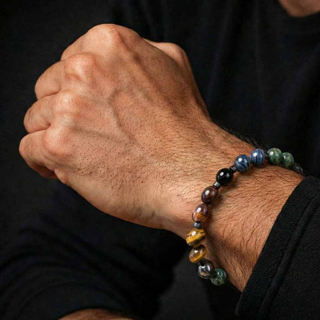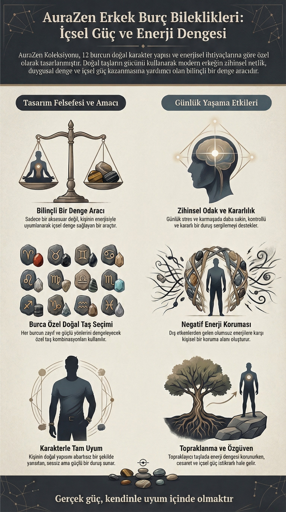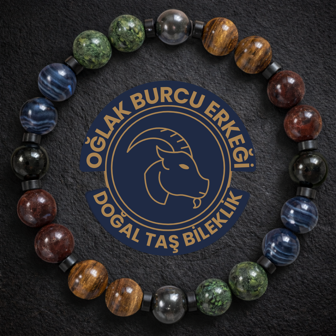 Bu bileklik; sorumluluklarını taşıyan, hedeflerine sabırla ilerleyen ve gücünü kontrollü şekilde kullanmak isteyen Oğlak burcu erkekleri için tasarlandı. Taş kombinasyonu; disiplin ve dayanıklılığı desteklerken, güçlü ve dengeli bir enerji alanı oluşturmayı amaçlar.