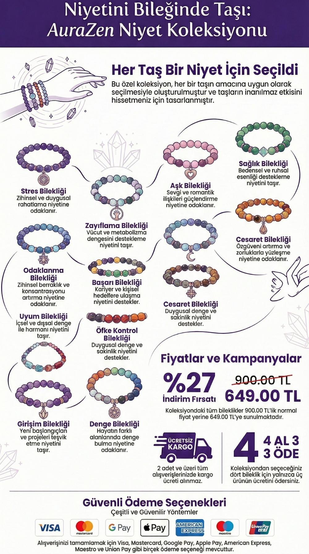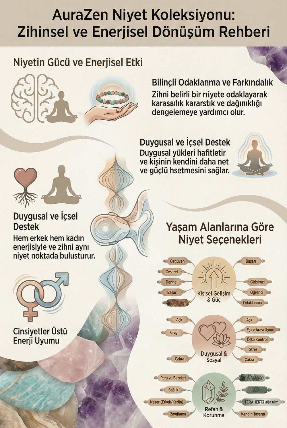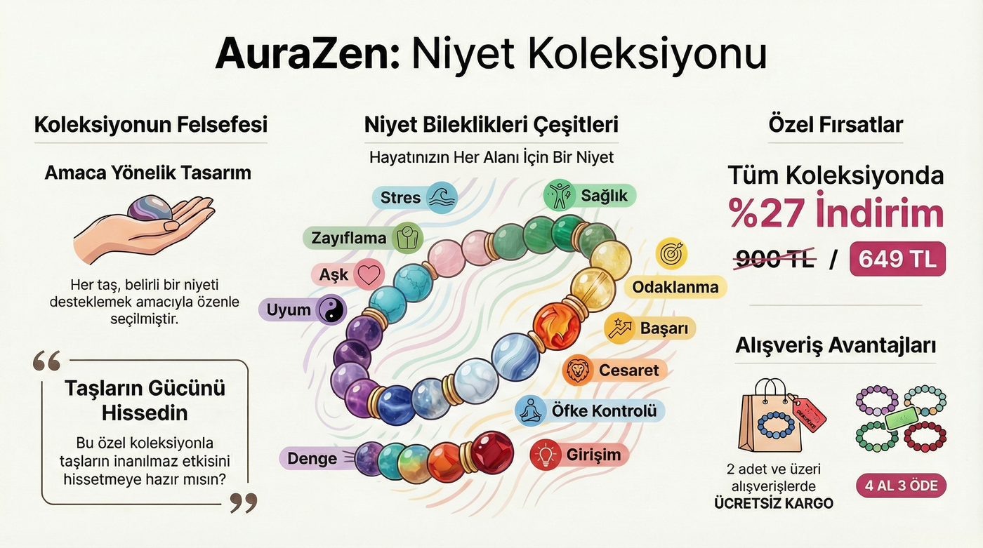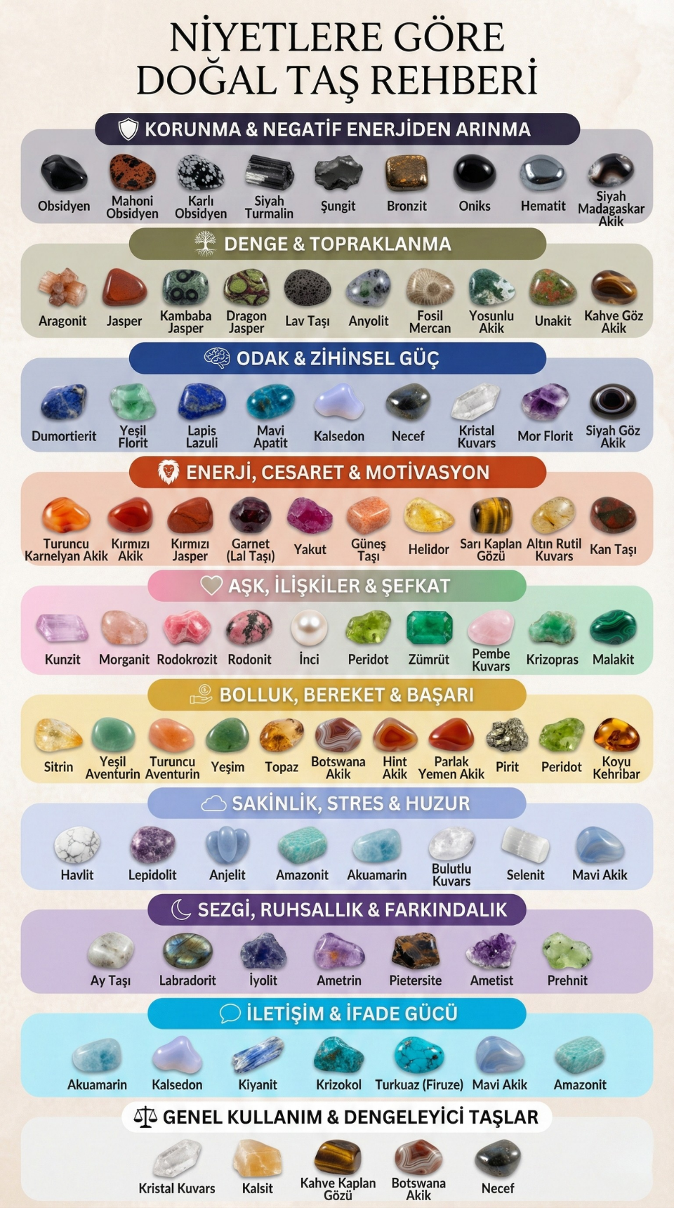Doğal taşlar frekans ve titreşim temelli enerjilerle çalışır. Düzenli kullanımda niyetlerinizi destekler, zihinsel ve ruhsal dengeyi güçlendirir.
