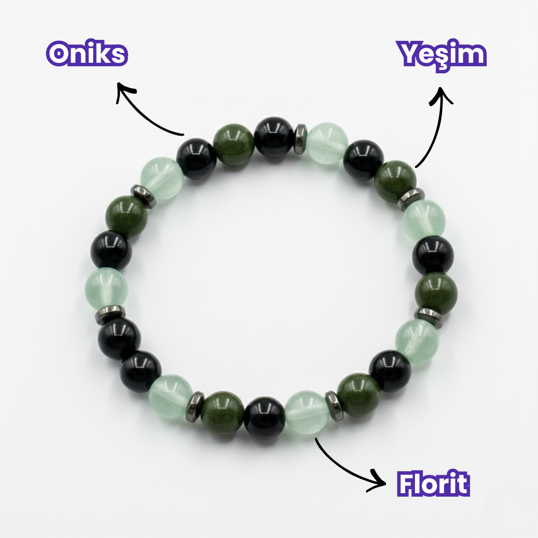 Sağlık Bilekliği, günlük rutinde kendini daha iyi, daha dengeli ve daha toparlanmış hissetmek isteyenlere hitap eder. Taş uyumu; iyilik halini destekleyen sakin ama güçlü bir enerji dili kuracak şekilde seçildi.
