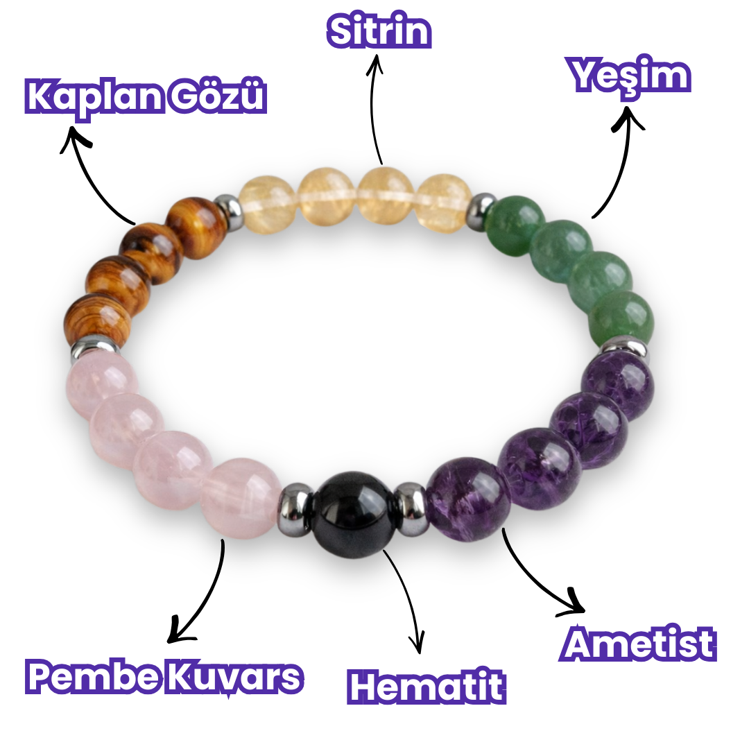 Bu bileklik, ilişkide iletişimi güçlendirmek, daha yumuşak konuşmak ve birbirini daha iyi hissetmek isteyen çiftler için tasarlandı. Taş uyumu; hem kalbi yumuşatıp hem de güven duygusunu koruyacak şekilde dengelendi.